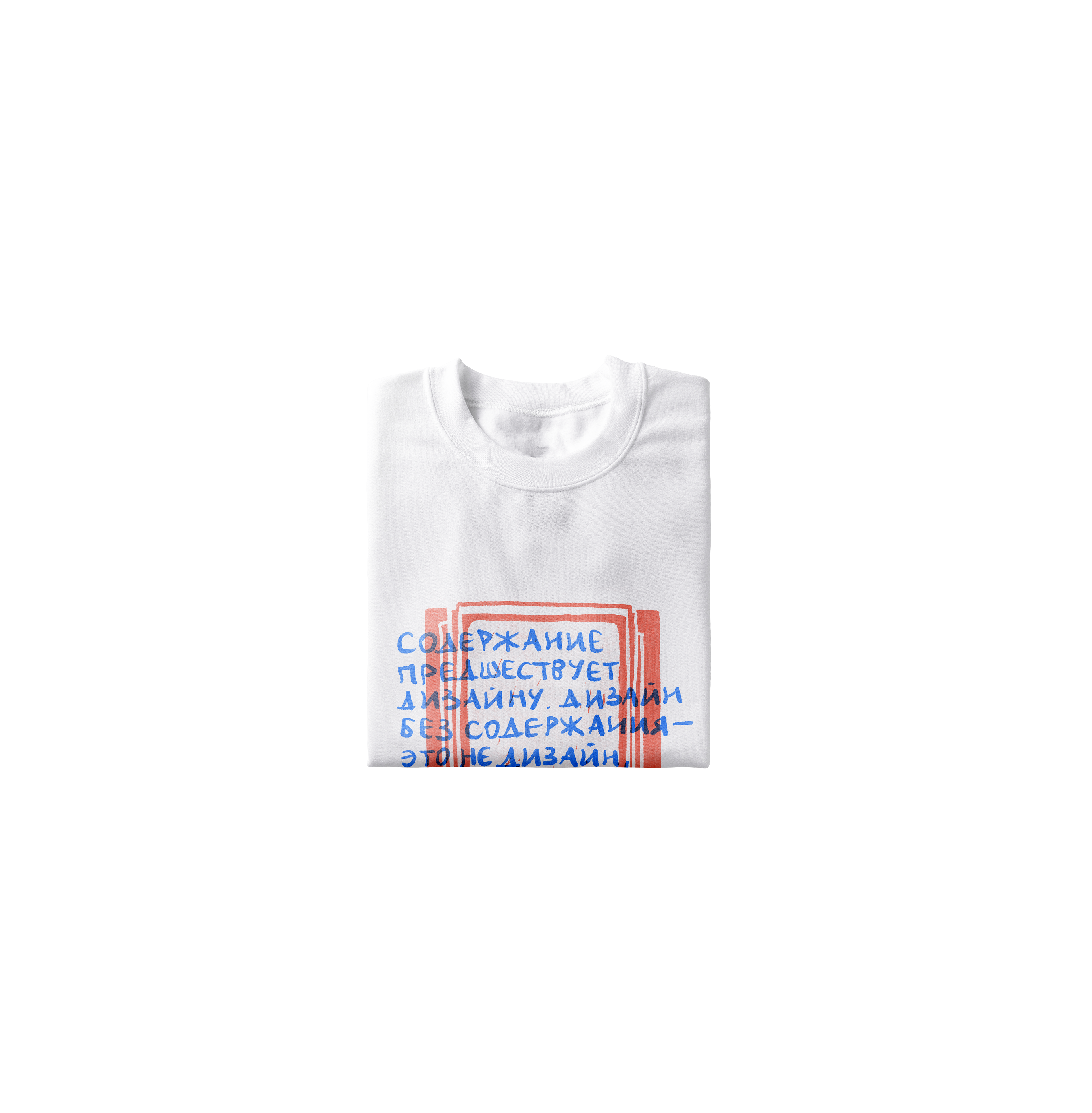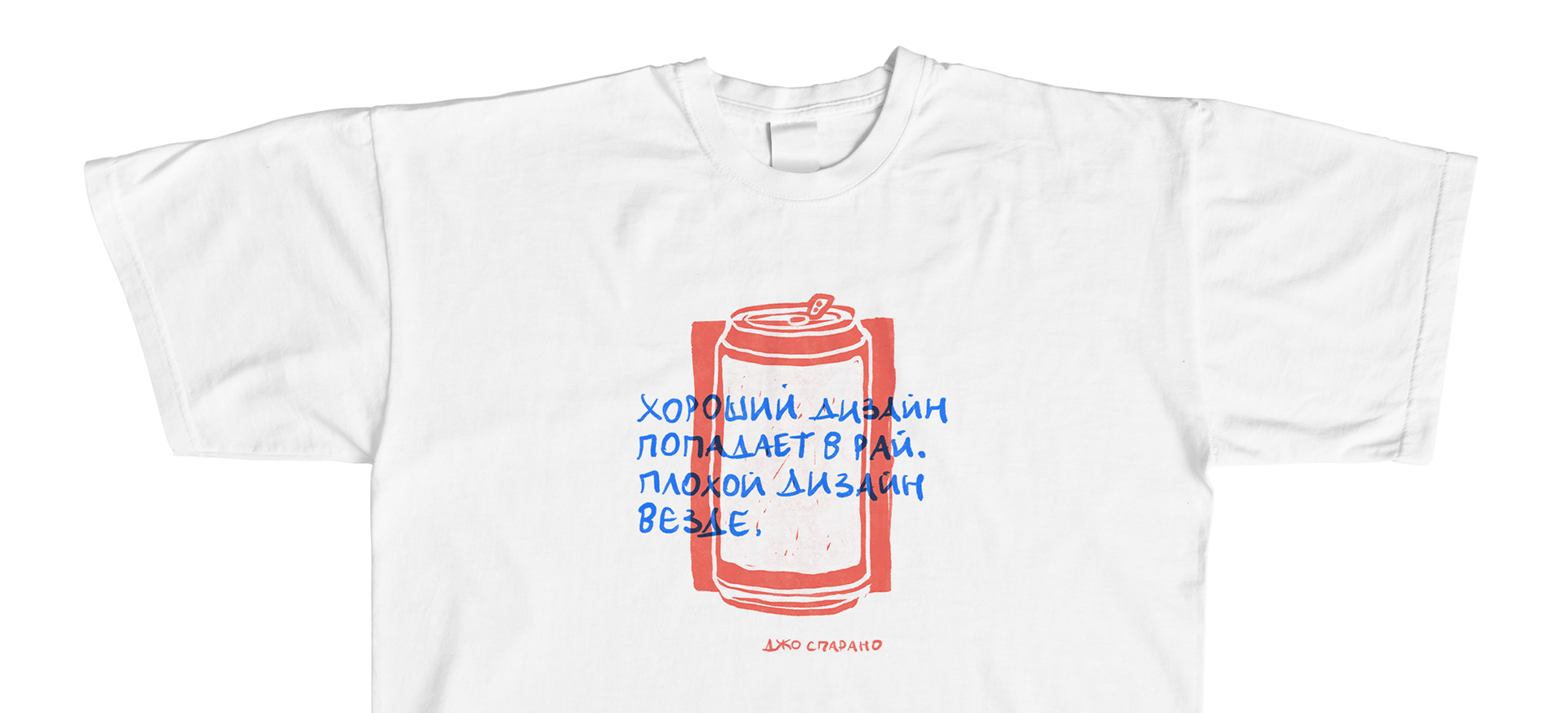 6 shirts with quotes said by famous graphic designers. Handwritten text on illustrated media. Linocut imitation.