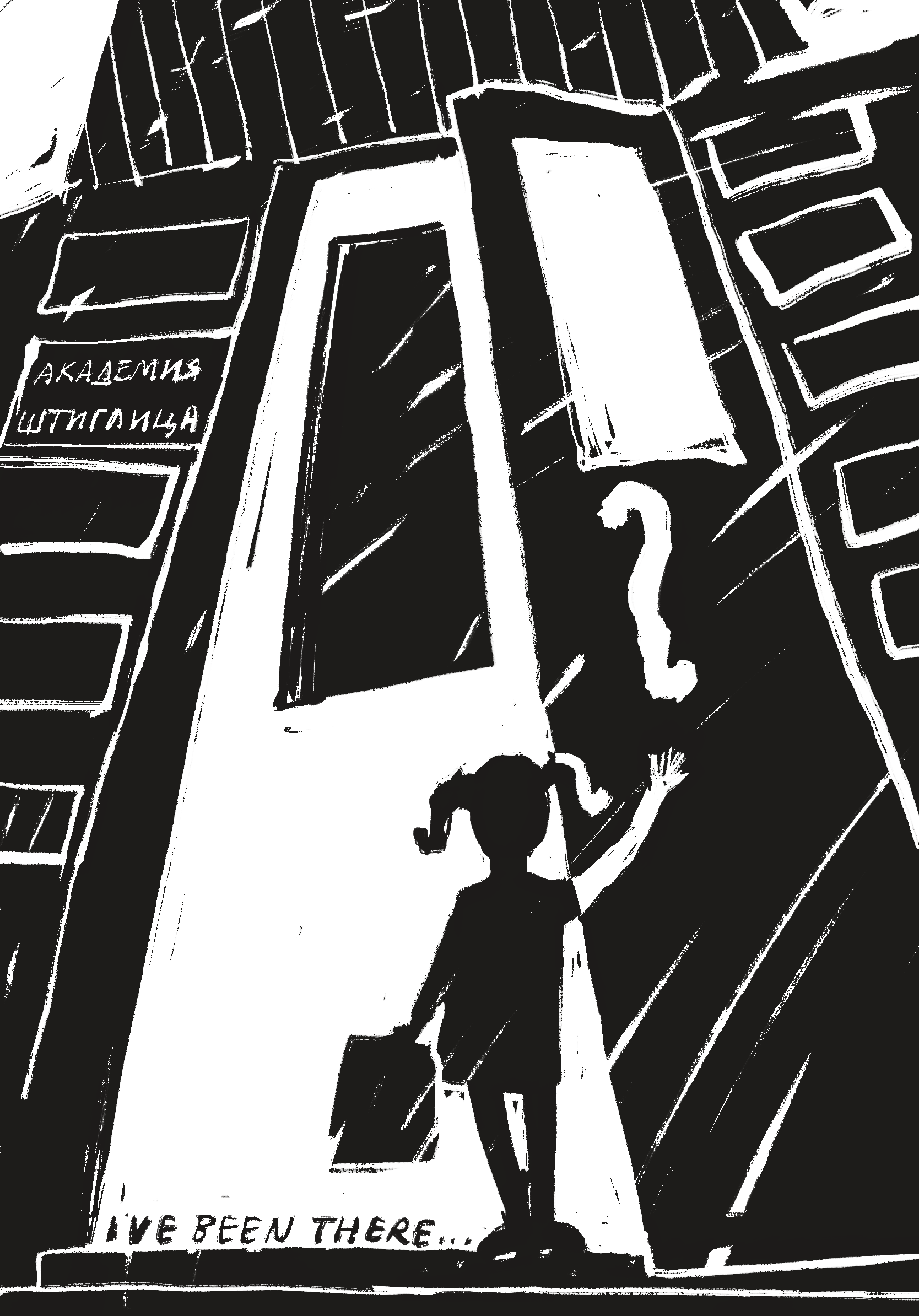 Illustrated postcards collection “I’ve been there” about student life in the Stieglitz Academy. The illustrations are made using digital graphics technology, in black and white, mimicking printed graphics (linocut).